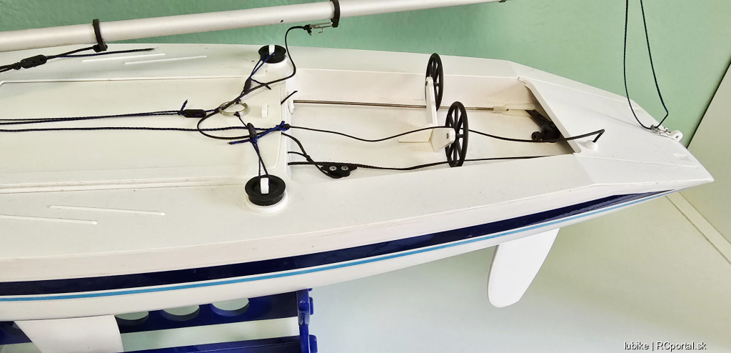 Ovládanie: 2.4 Ghz, 3ch ovládané funkcie: plachty, motor, kormidlo pohon: model 4 AA tužkové baterky Treba opraviť/prerobiť napájanie. Elektronika (motor, kormidlo, servá) fuknčné.…