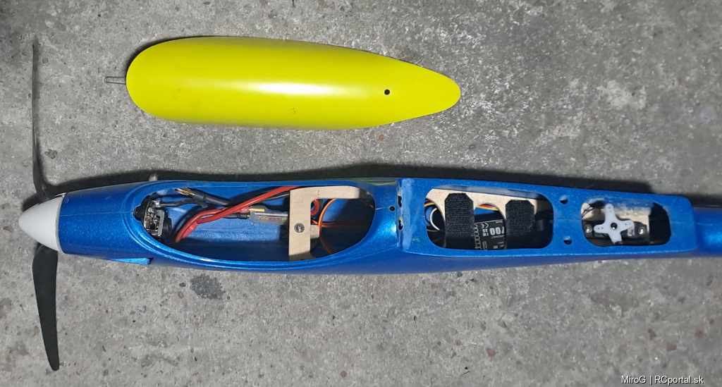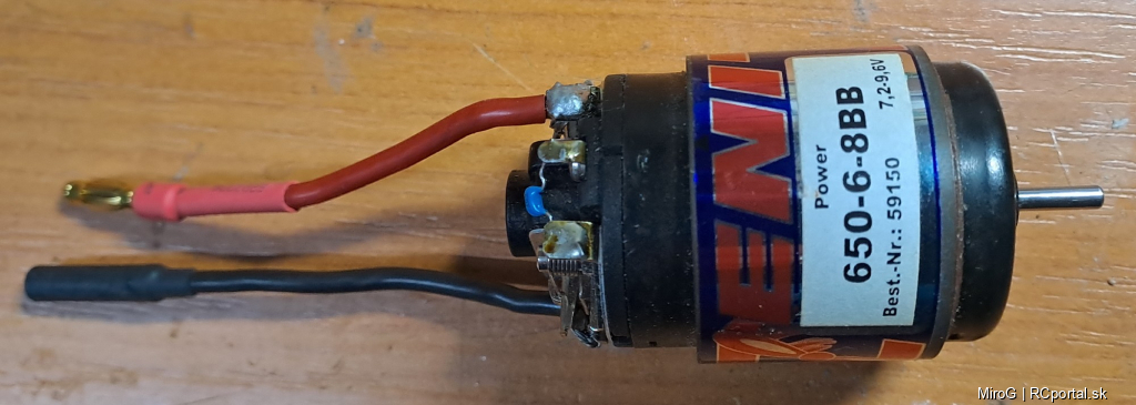 Motor je veľkosti 650, regulátor Schulze 40A . Akumulátor 7s NiCd 8,4V.